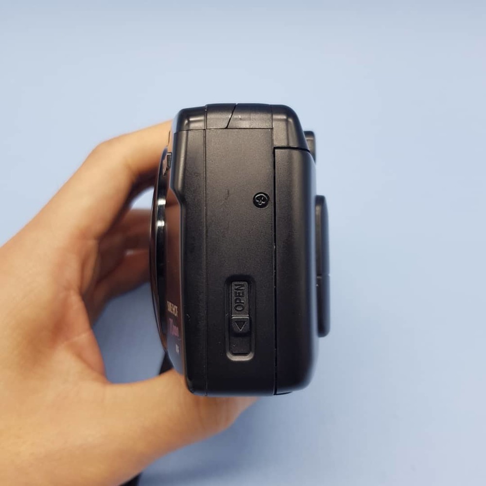 35-70mm 2배줌 렌즈를 탑재한 빠릿한 AF 카메라이며 전면 덮개를 열면 전원이 켜지고 플래시가 팝업됩니다.