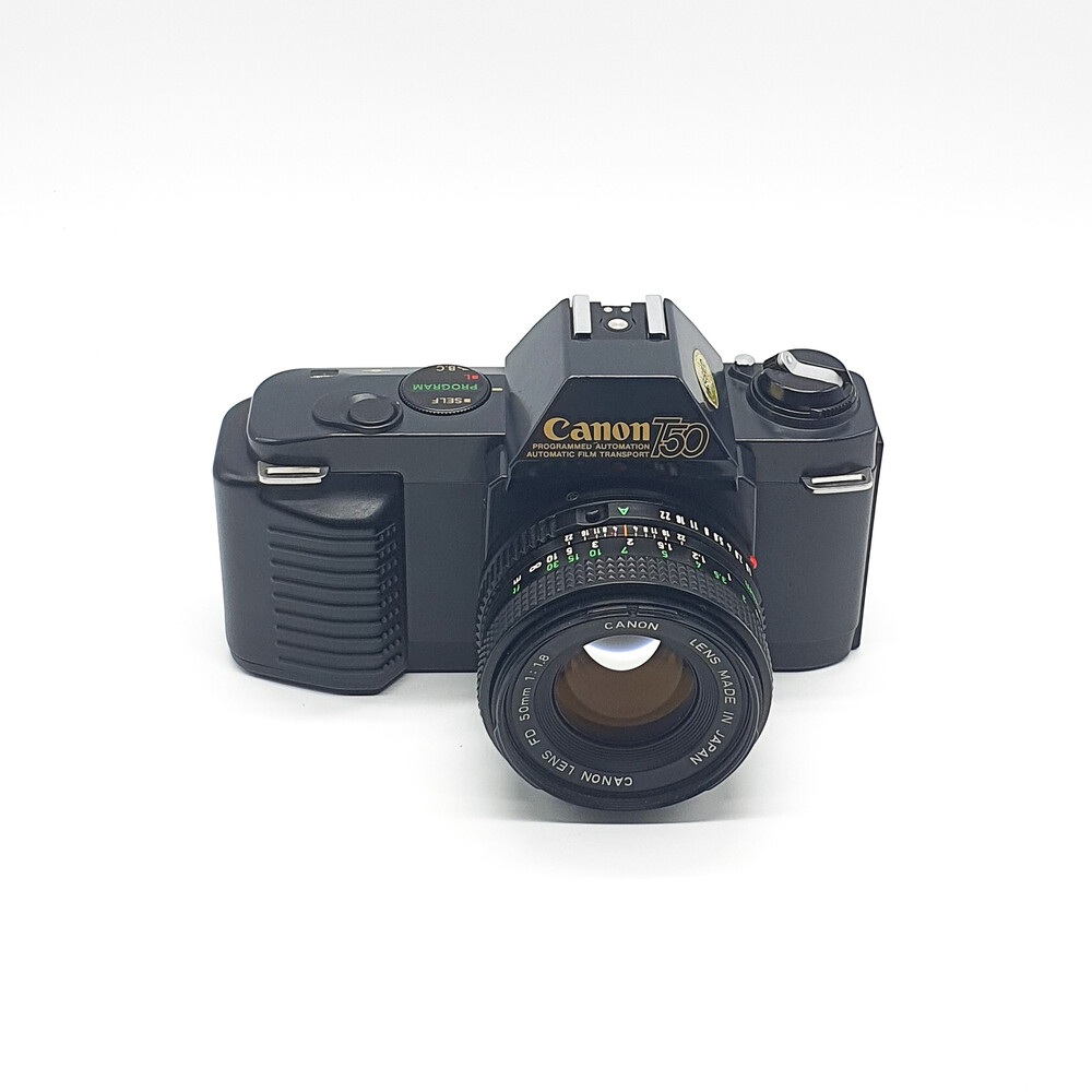 1983년 출시된 초보자용 SLR(일안 리플렉스) 캐논 T50입니다.
