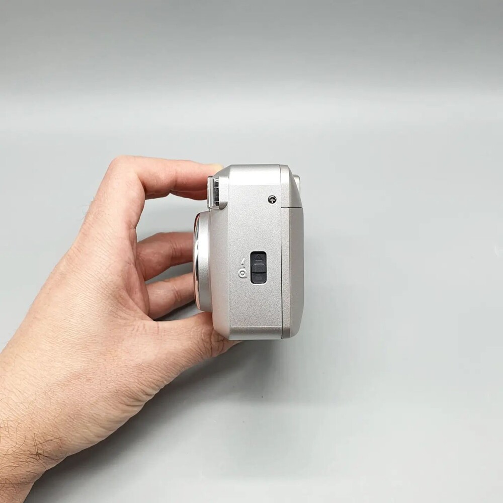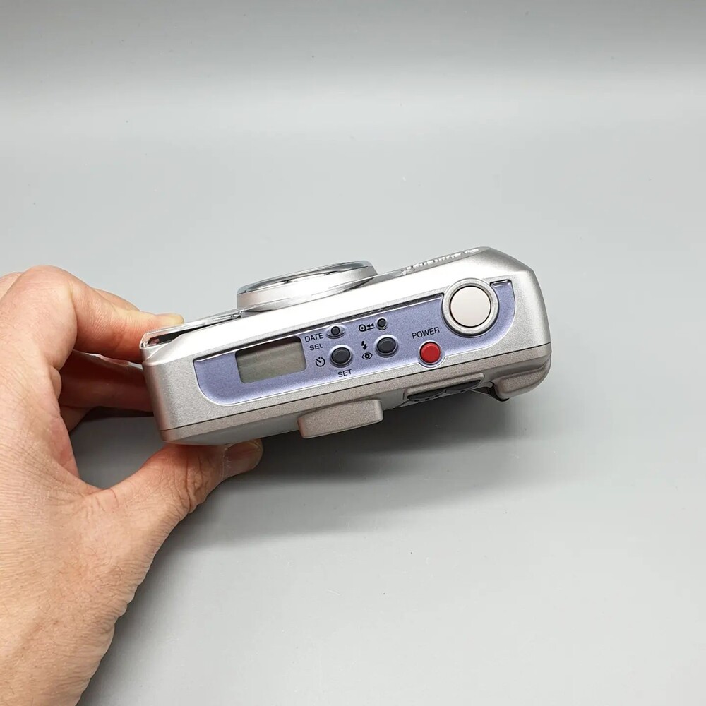 38-90mm 2.4배 줌 렌즈를 장착하고 있고 상단 버튼으로 셀프타이머 날짜 세팅(32년까지 지원), 플래시 제어, 무한대 모도, 야간 촬영모드 등을 제어 할 수 있습니다.
