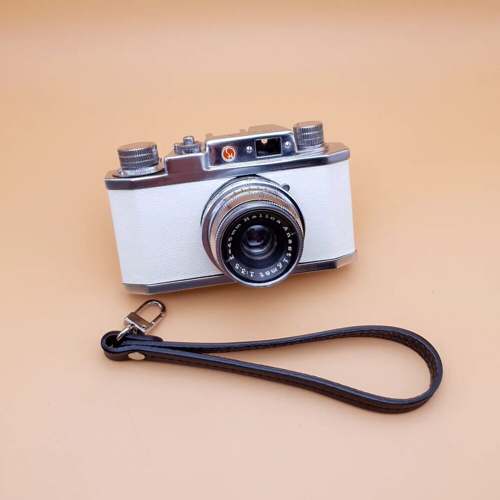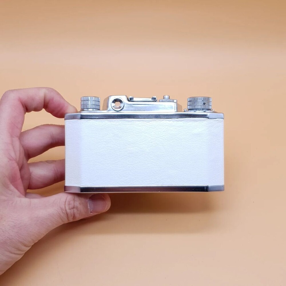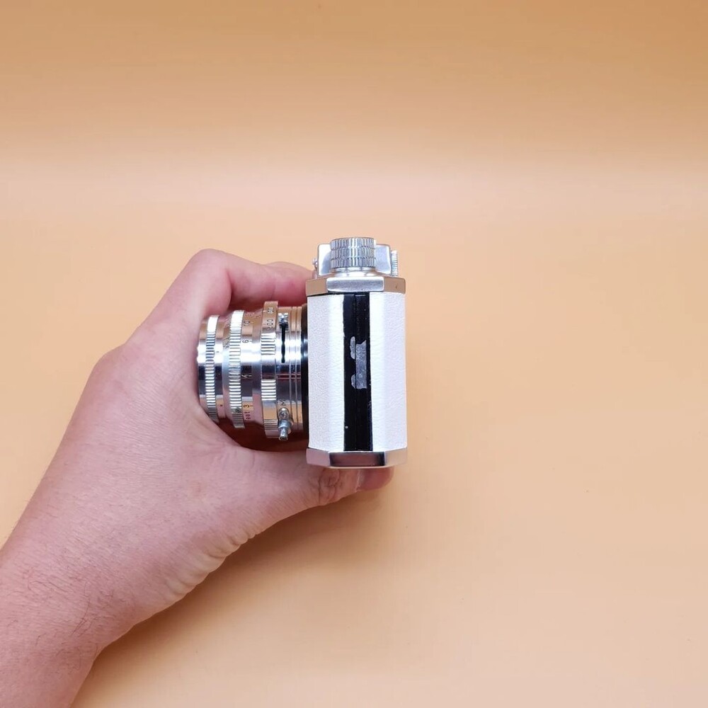 영국 식민지 시절 홍콩에서 생산된 제품으로 일본 카메라의 정교함, 그리고 독일 카메라의 단단함보다는 약간 날것의 느낌이 나는 카메라입니다. 또한 흰색 인조 가죽으로 커스텀 해 귀여운 외관을 보여줍니다.
