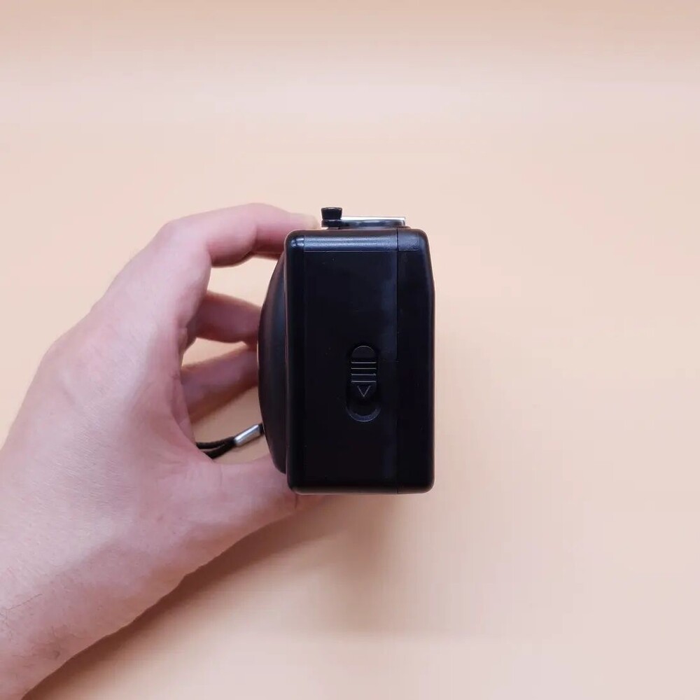 35mm 화각의 렌즈가 장착 되어 있고 1회용 카메라처럼 썸휠 돌려서 필름감고 여유있게 1.5미터 이상 거리에서 셔터 눌러주시면 됩니다.⠀