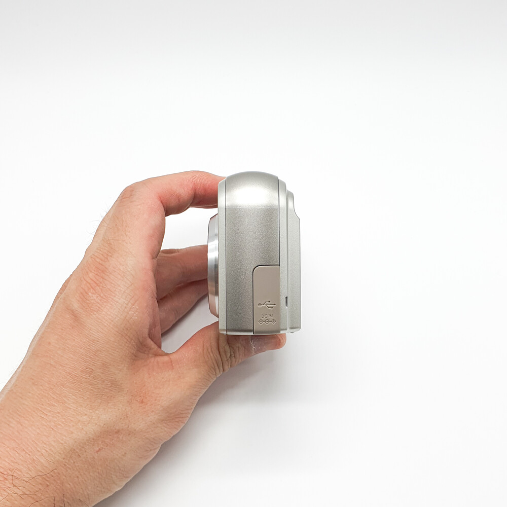 한 손에 쏙 들어 오는 작은 사이즈(95 x 62 x 31mm)에 무게는 190그램으로 가벼워 주머니에 넣고 다니기도 좋습니다. 여행시 휴대폰 대신 가볍게 촬영하기 좋고요.