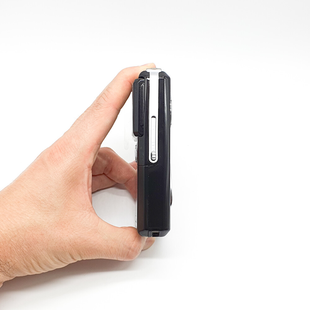 보통 이런 소형 기기에는 전용 배터리를 사용하지만 이 캠코더는 구하기 쉬운 AA 배터리 사용하기에 아주 편리합니다. 일반 알카라인 배터리를 사용하셔도 되고 좀 더 효율적으로 사용하시려면 충전지(AA 사이즈)를 사용하셔도 됩니다.