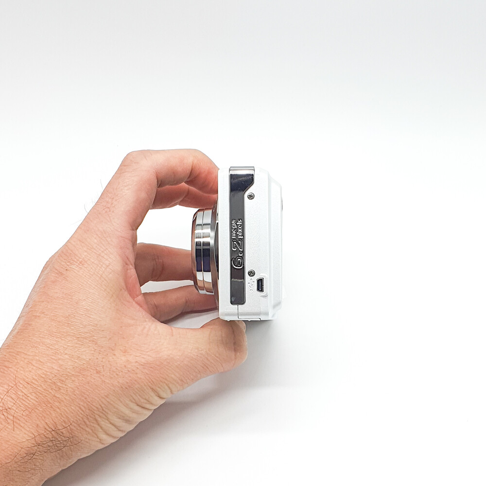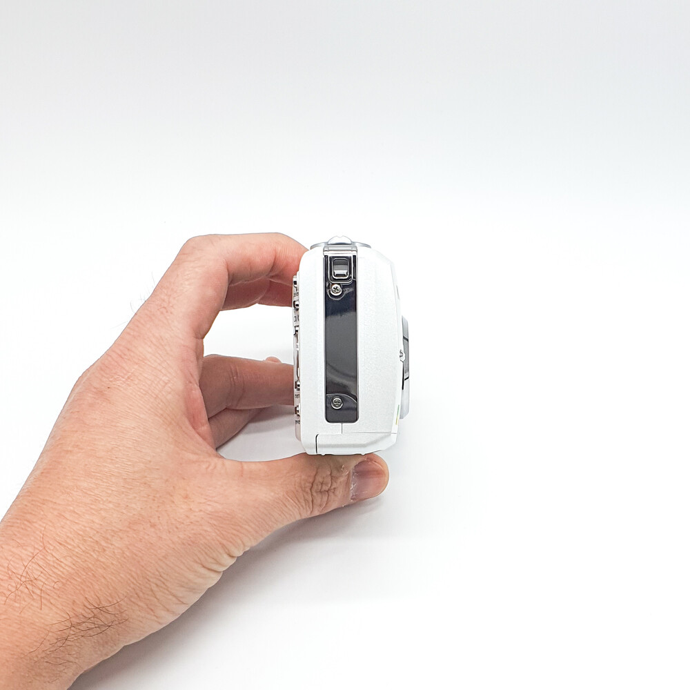 한 손에 쏙 들어 오는 작은 사이즈(91 x 66 x 35 mm)에 무게는 187그램으로 가벼워 주머니에 넣고 다니기 좋습니다. 여행 시 휴대폰 대신 가볍게 촬영하기 좋고요.