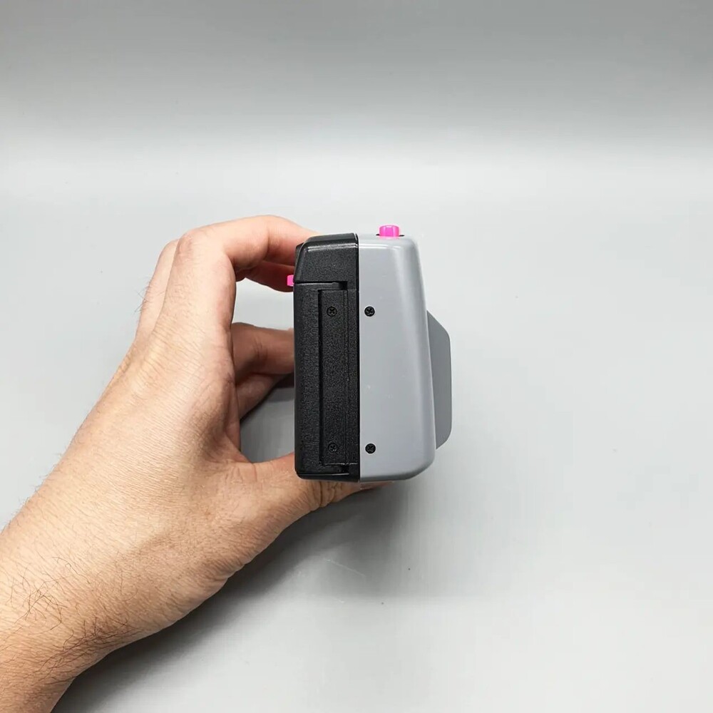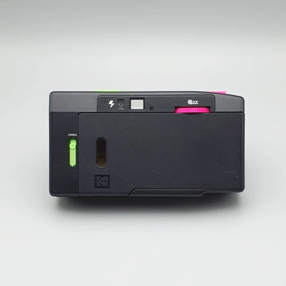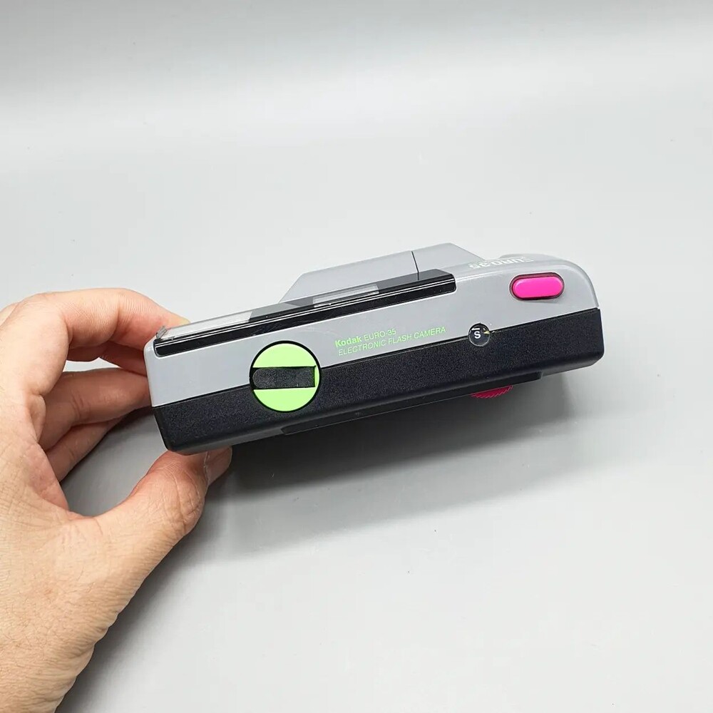회색바디에 형광색 버튼들이 뭔가 레트로한 느낌을 슬슬 풍기는 그런 카메라입니다.