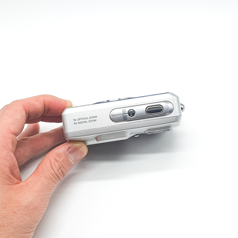 300만 화소에 3배 줌 렌즈(36mm f/2.8 - 108mm f/4.9)가 장착되어 있습니다.