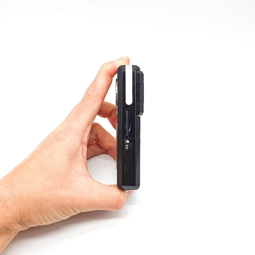 보통 이런 소형 기기에는 전용 배터리를 사용하지만 이 캠코더는 구하기 쉬운 AA 배터리 사용하기에 아주 편리합니다. 일반 알카라인 배터리를 사용하셔도 되고 좀 더 효율적으로 사용하시려면 충전지(AA 사이즈)를 사용하셔도 됩니다.