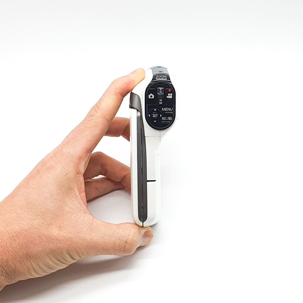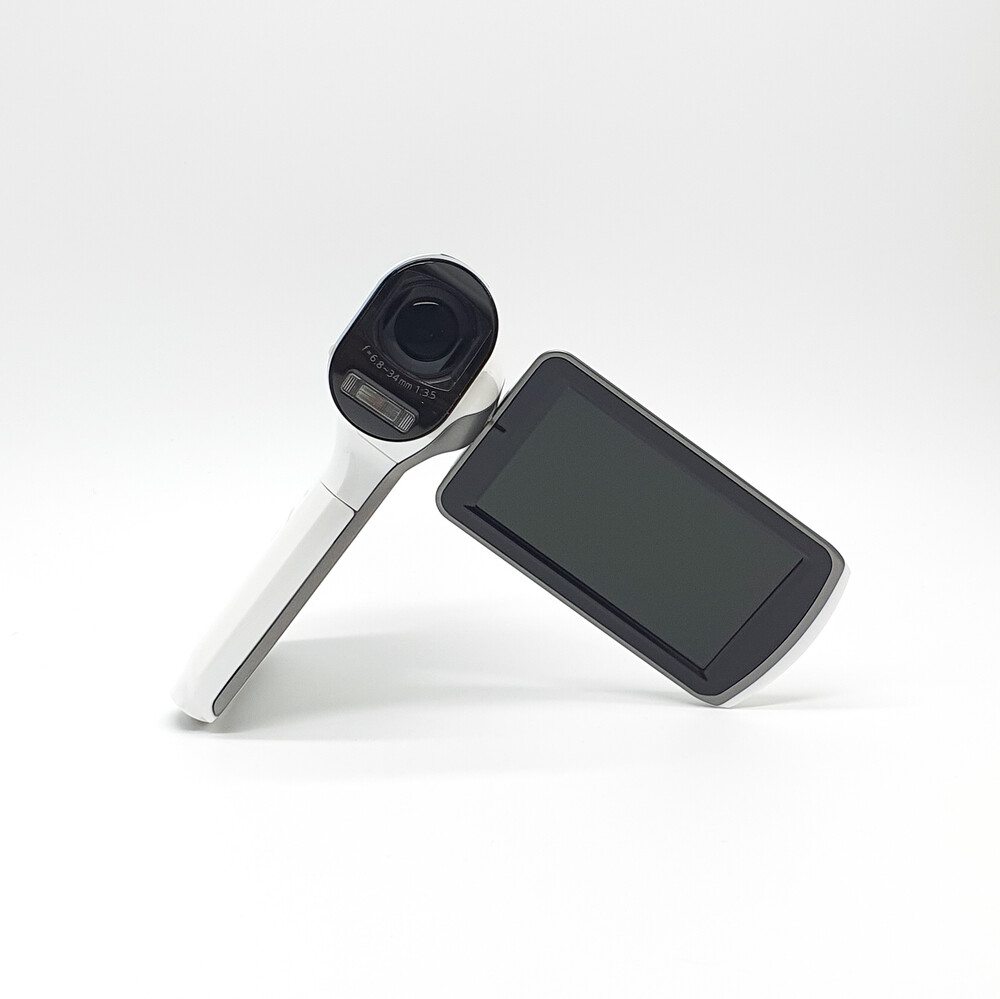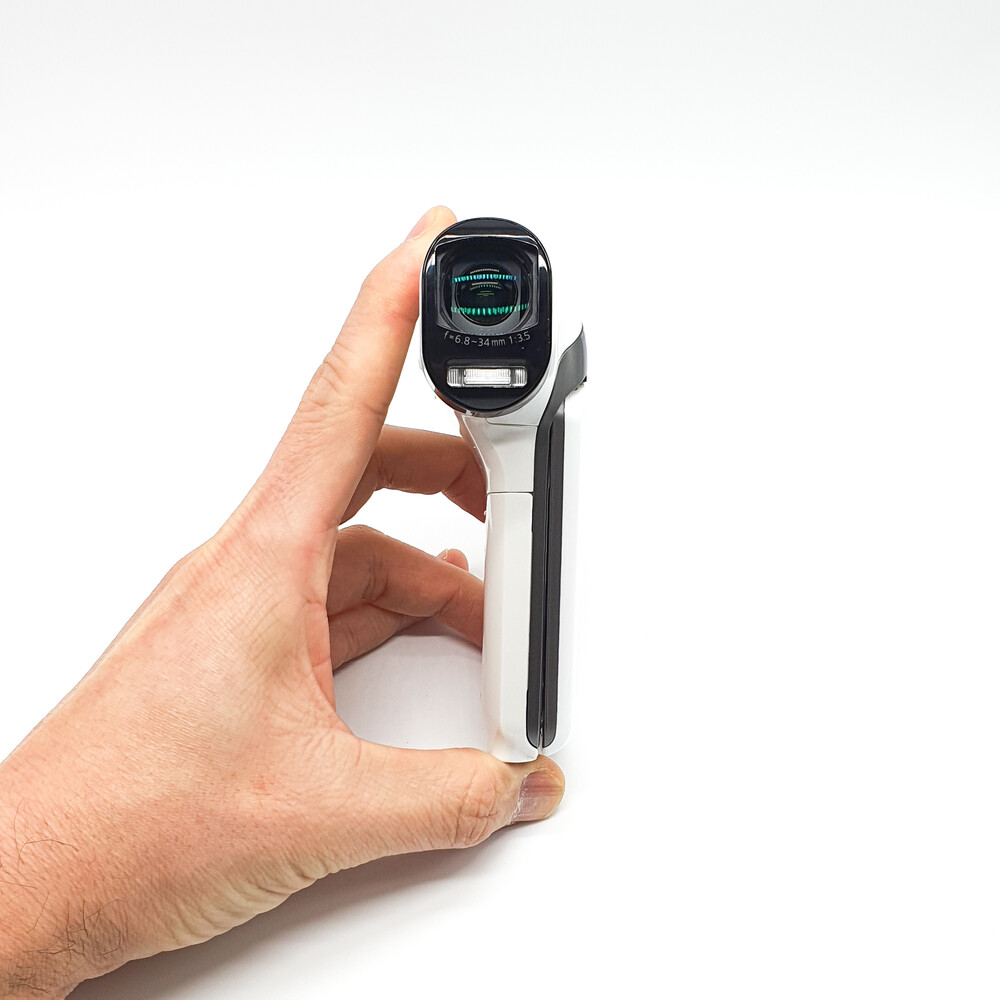 포켓형 캠코더 보다는 약간 크지만 광학적인 성능이 더 좋고 권총형 그립이라 보다 안정적으로 촬영 가능합니다.