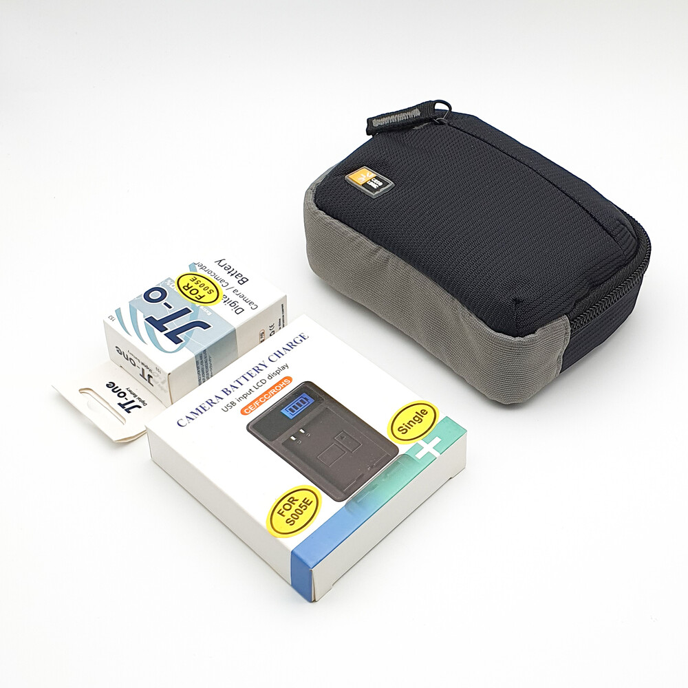 SD 메모리 카드(4GB), 카드 리더기, 전용 배터리 2개(1개는 새제품), 충전기, 상태 좋은 사제 케이스 포함 구성입니다.