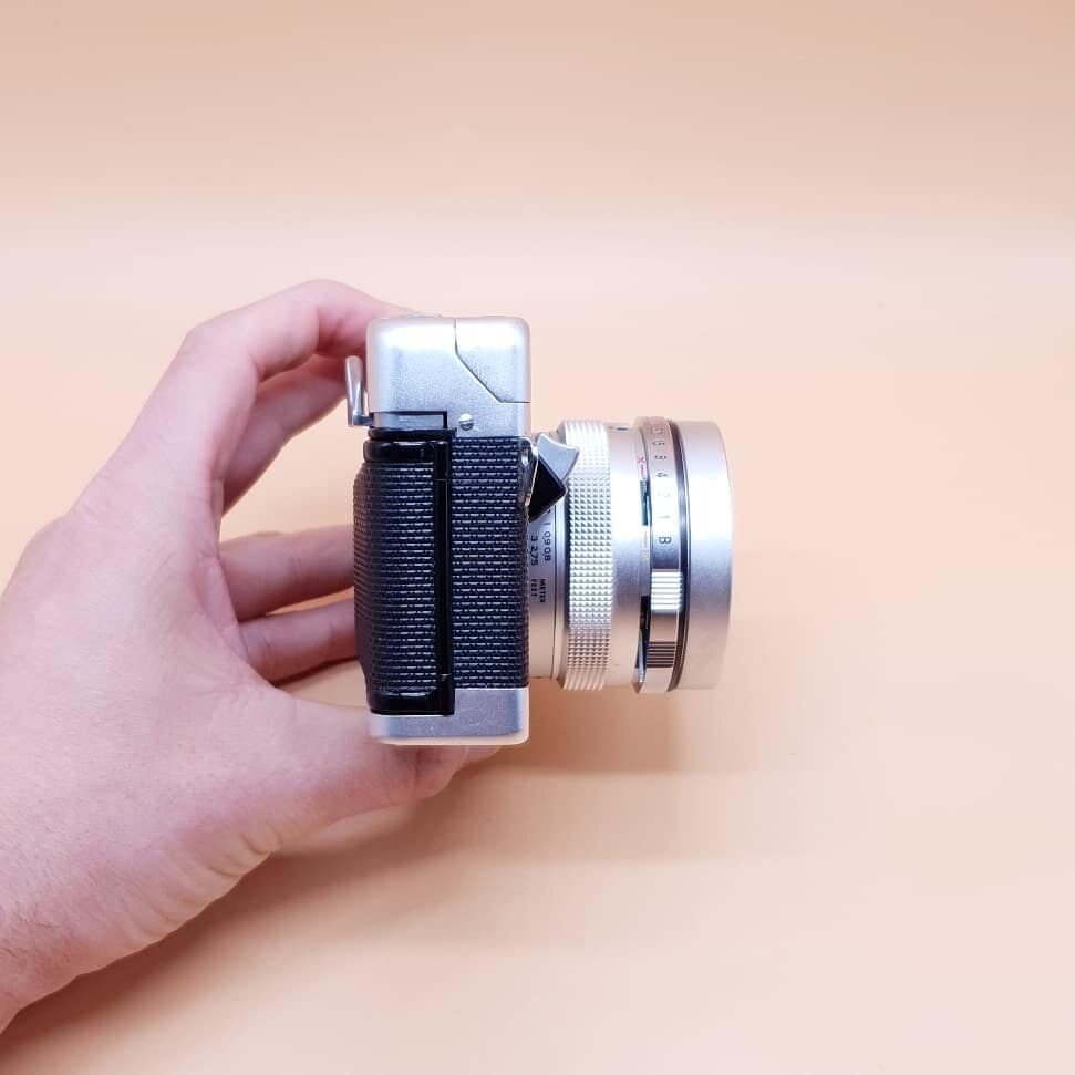 이 카메라도 마찬가지로 평범 하지 않은 개성 있는 디자인을 하고 있고 지금은 찾아보기 힘든 레어한 모델 중 하나 입니다.당시 카메라 치고는 무게가 500그램으로 가벼운 편이라 휴대성이 나쁘지 않습니다.⠀