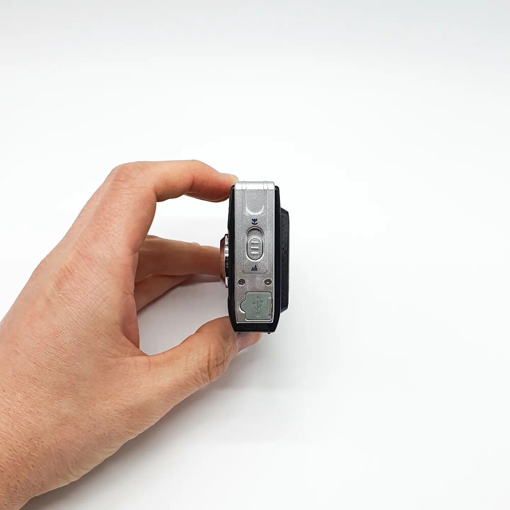 한 손에 쏙 들어 오는 작은 사이즈(88 x 59 x 25mm)에 무게는 105그램(배터리 무게 포함)으로 가벼워 주머니에 넣고 다니기 좋습니다. 여행 시 휴대폰 대신 가볍게 촬영하기 좋습니다.⠀