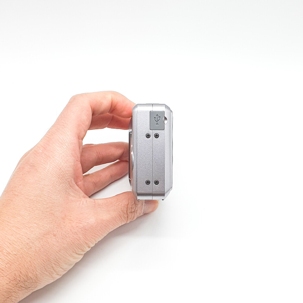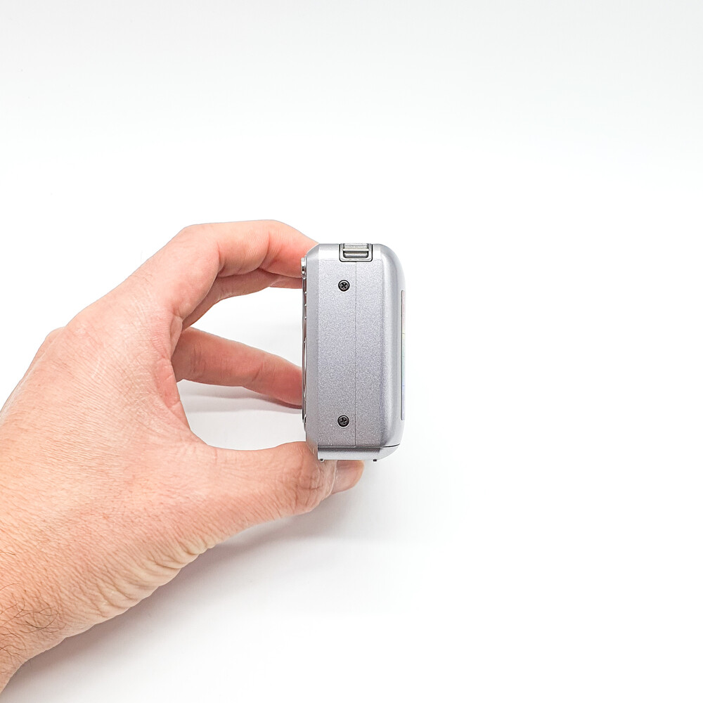 한 손에 쏙 들어 오는 작은 사이즈(90 x 61 x 27mm)에 무게는 165그램으로 가벼워 주머니에 넣고 다니기도 좋습니다. 여행시 휴대폰 대신 가볍게 촬영하기 좋습니다.