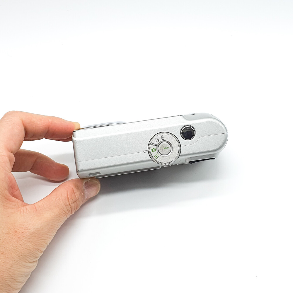 300만 화소에 35-105mm(35mm 환산시) f/2.6 - f/4.7의 3배 줌 렌즈가 장착되어 있습니다.