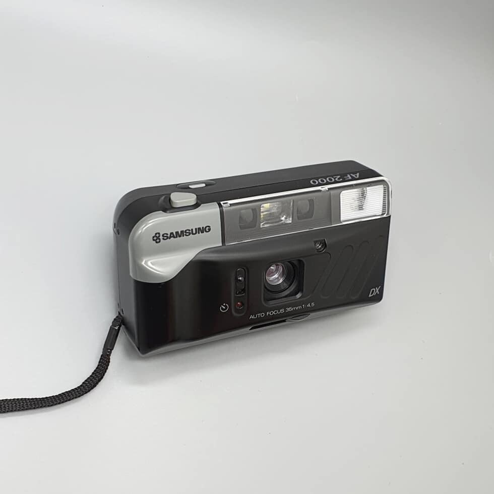 옛 삼성 로고가 돋보이는 전자동 AF 카메라 SAMSUNG AF 2000입니다.