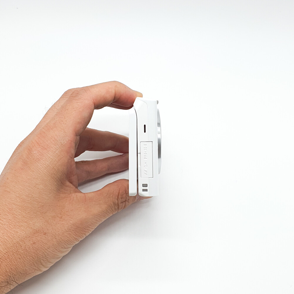한 손에 쏙 들어 오는 작은 사이즈(98.5 x 60 x 17.2mm)에 무게는 150그램(배터리 무게 포함)으로 가벼워 주머니에 넣고 다니기도 좋습니다.