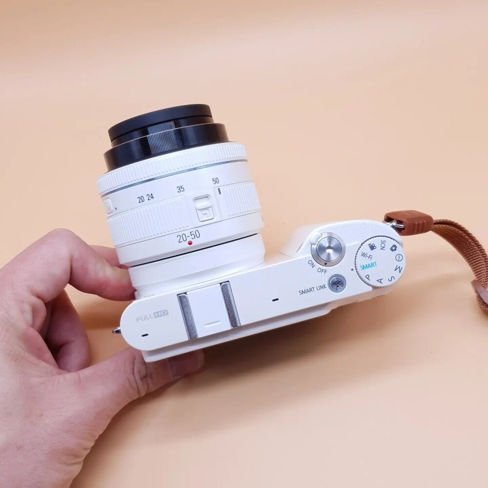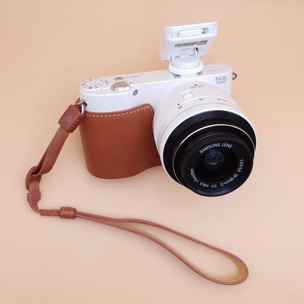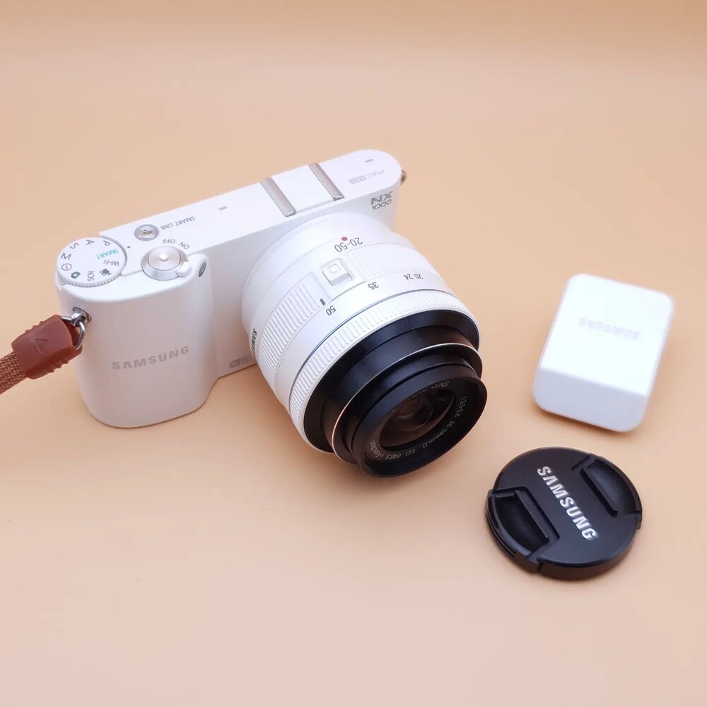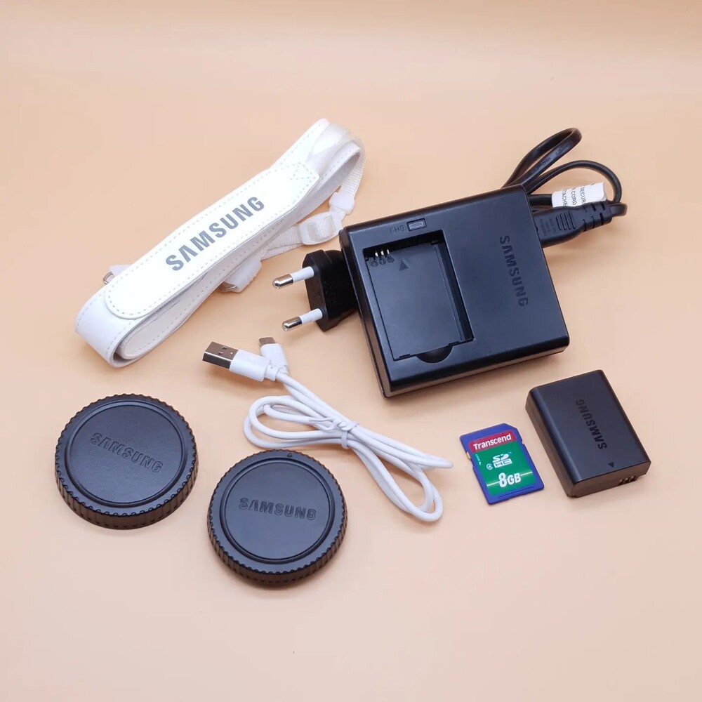 본체, 20-50mm 번들 렌즈, 렌즈캡, 기본 스트랩, 플래시, 플래시 케이스, 배터리 1개, 8GB 메모리 1개, 카드 리더기, 배터리 충전기 그리고 고급스런 삼성 정품 가죽 속사 케이스, 가죽 손목 스트랩 포함 구성입니다.⠀