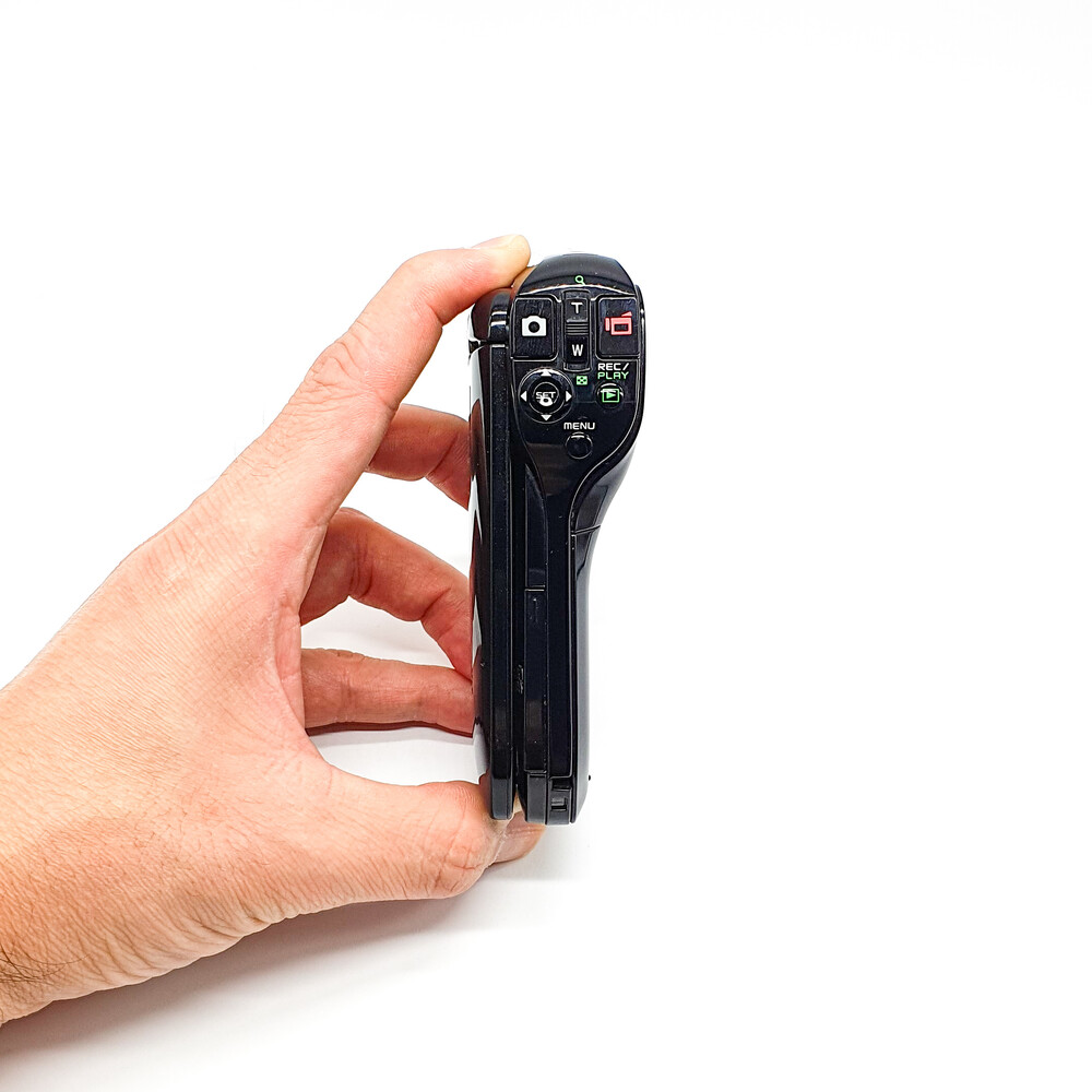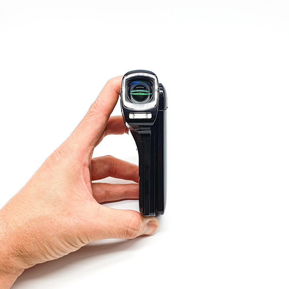 포켓형 캠코더 보다는 약간 크지만 광학적인 성능이 더 좋고 권총형 그립이라 보다 안정적으로 촬영 가능합니다.