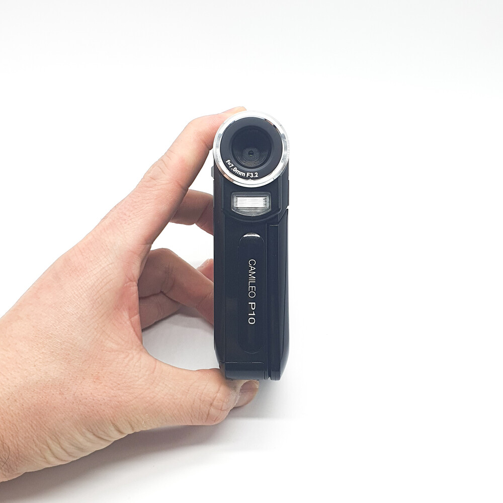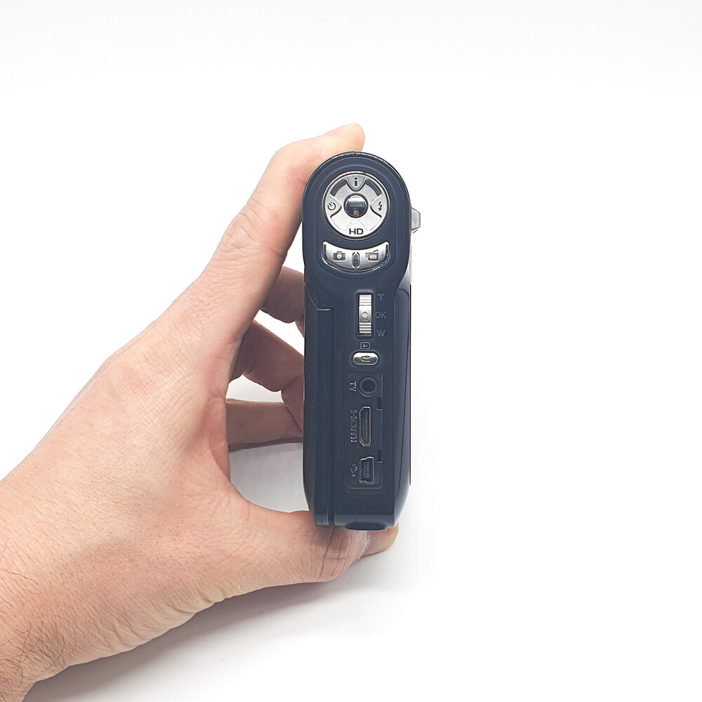 포켓형 캠코더 보다는 약간 크지만 광학적인 성능이 더 좋고 권총형 그립이라 보다 안정적으로 촬영 가능한 모델입니다. 권총형 스타일 중 초기형 모델이라 디자인에 레트로한 느낌이 다소 뭍어 있습니다.⠀