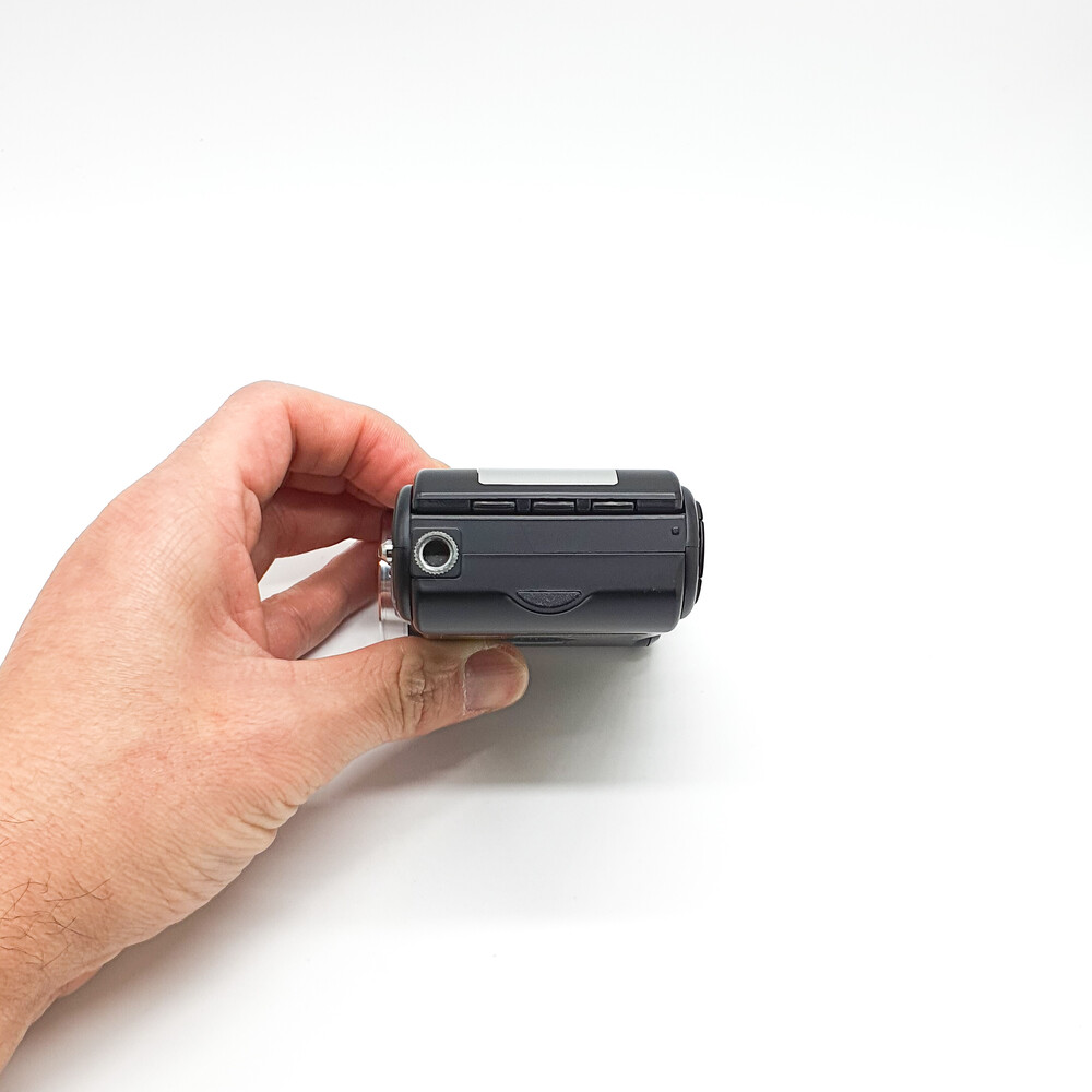 포켓형 캠코더 보다는 약간 크지만 광학적인 성능이 더 좋고 권총형 그립이라 보다 안정적으로 촬영 가능한 모델입니다. 권총형 스타일 중 초기형 모델이라 디자인에 레트로한 느낌이 다소 뭍어 있습니다.⠀