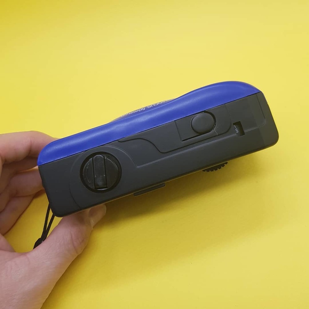 외관이 참 옛날 스럽게 생긴 1980년대 출시된 파란색 토이카메라입니다.